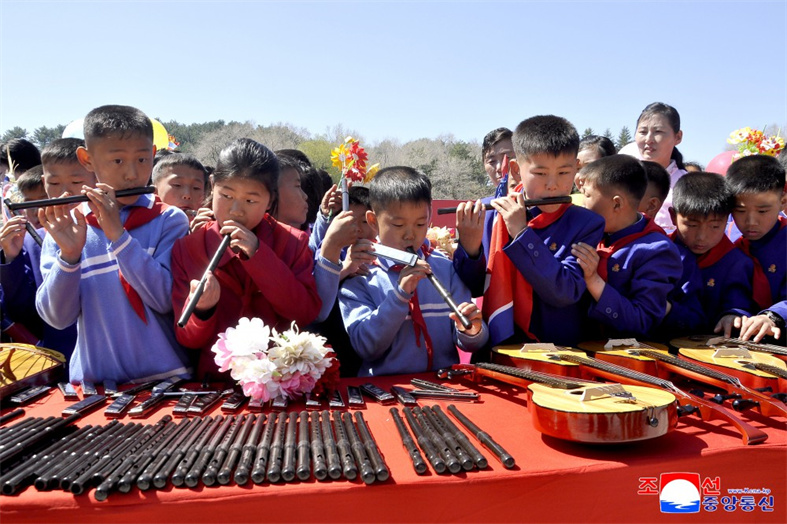 元帅向平安北道、慈江道和两江道水灾区新建的学校送乐器