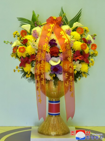 同日,敬爱的金正恩同志收到了金日成金正日基金理事会名誉副理事长赛铁军敬献的花篮。