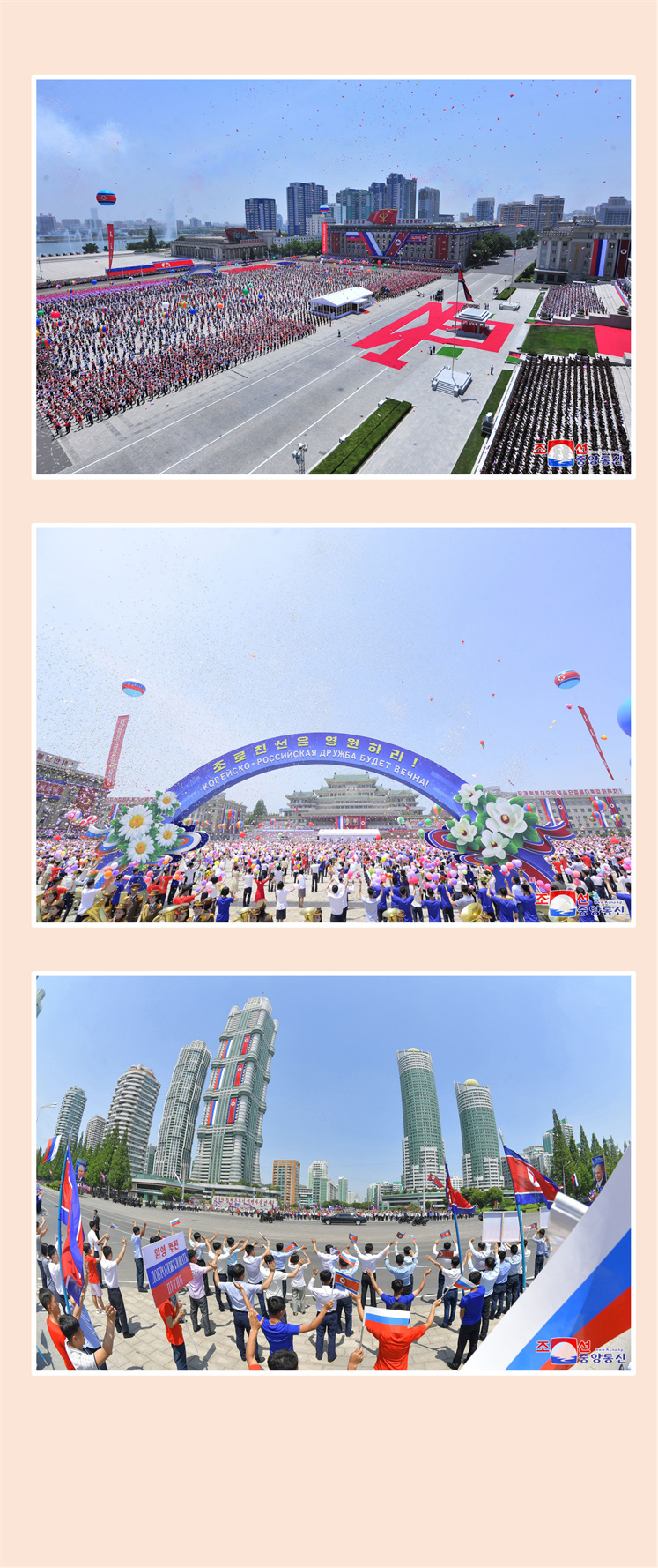 充分彰显朝俄两国人民的团结友谊与亲密战友关系俄联邦总统受到最高级别国宾待遇 朝鲜隆重举行欢迎仪式,平壤市数十万群众夹道欢迎