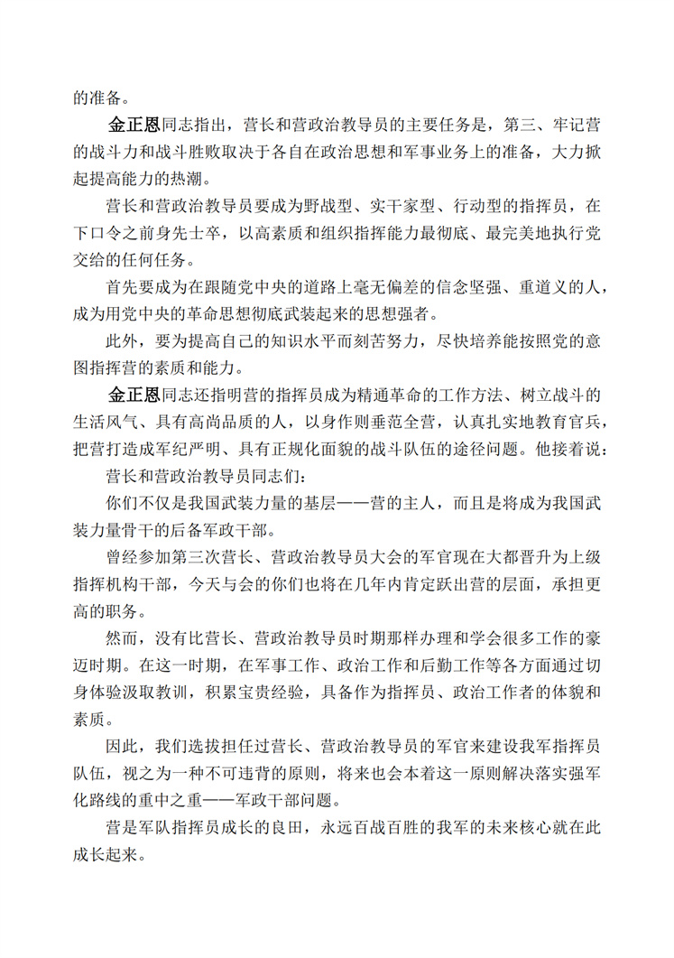 同志对朝鲜人民军第四次营长、营政治教导员大会与会者作了纲领性讲话