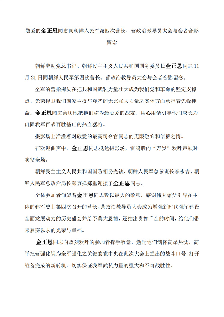同志同朝鲜人民军第四次营长、营政治教导员大会与会者合影留念