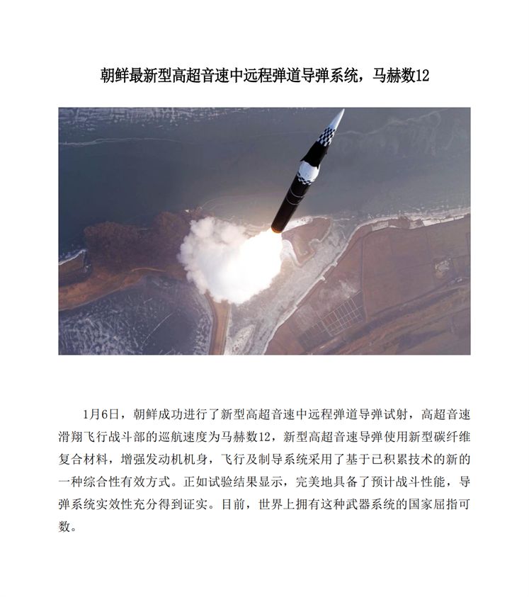 朝鲜最新型高超音速中远程弹道导弹系统,马赫数12