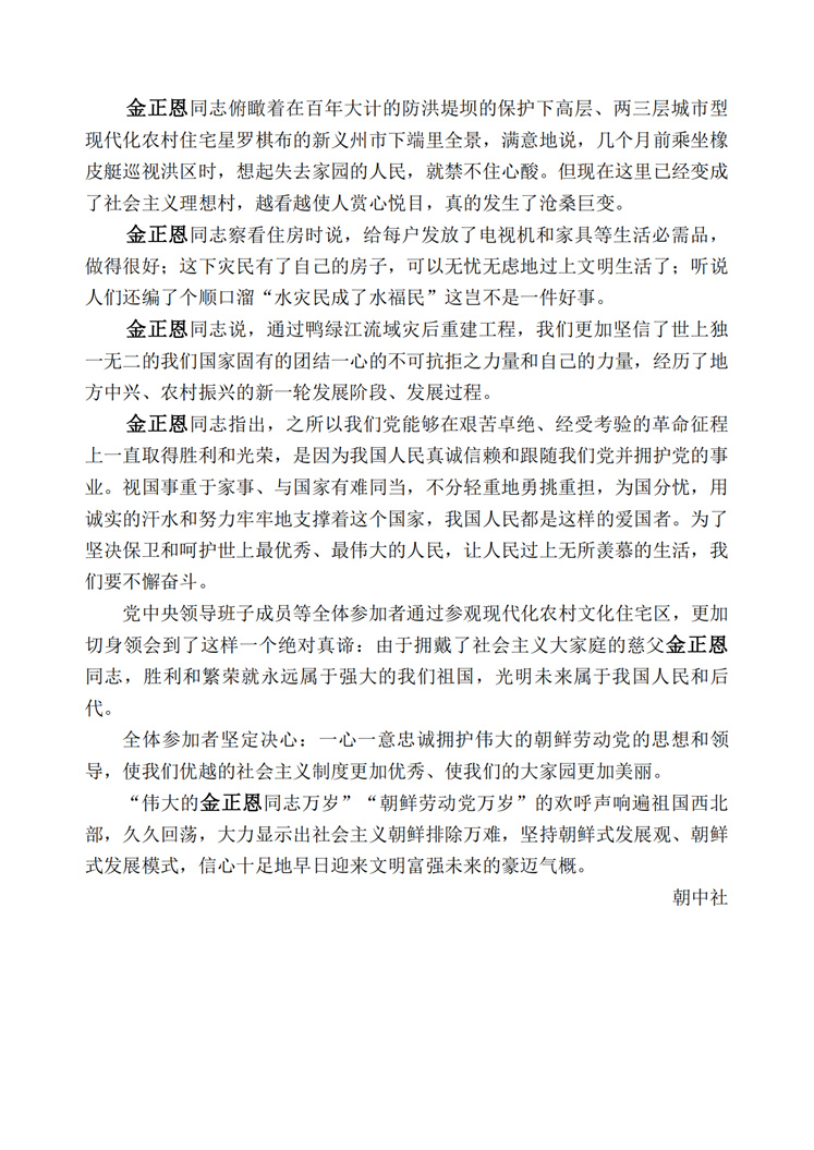 平安北道灾区住宅竣工典礼隆重举行敬爱的
