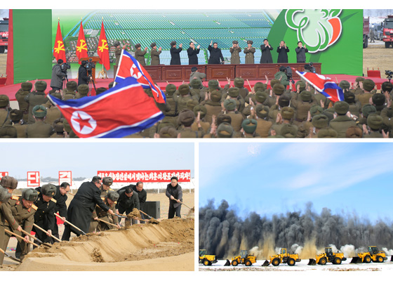 동지께서 격동적인 연설을 하시고 몸소 착공의 첫삽을 뜨시였다
