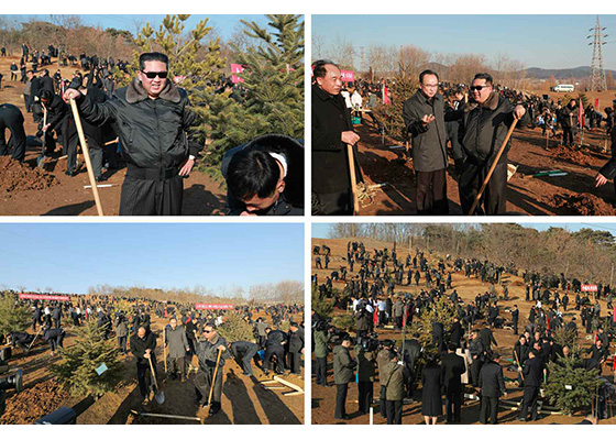 조선로동당 제2차 초급당비서대회 참가자들과 기념식수를 하시였다