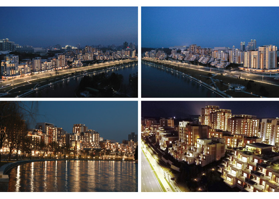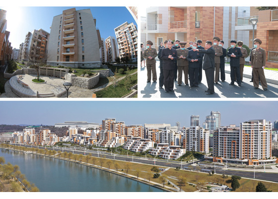 경루동에 일떠선 보통강강안다락식주택구를 돌아보시였다