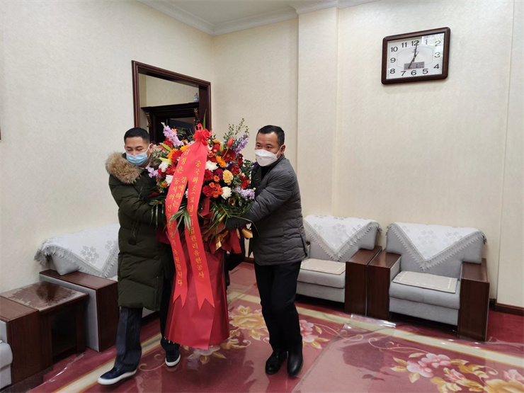 한편 경애하는 김정은동지께 중국 화조 (료녕)기업관리유한공사에서 꽃바구니를 드리였다.