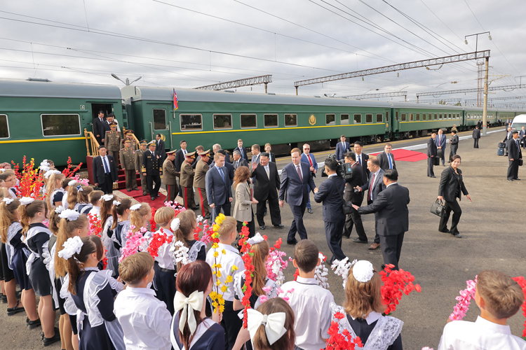 경애하는 김정은동지께서 로씨야련방 울라지보스또크시를 방문하시였다