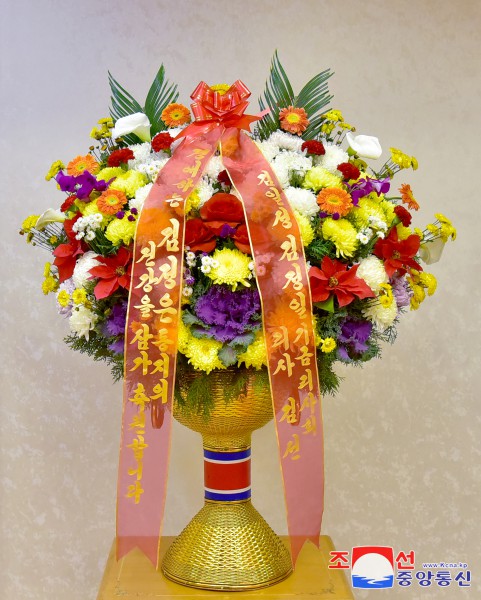 경애하는 김정은동지께 김일성김정일기금리사회 성원들과 외국의 인사들이 꽃바구니를 보내여왔다