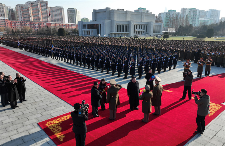 경애하는 김정은동지께서 건군절에 즈음하여 국방성을 축하방문하시였다