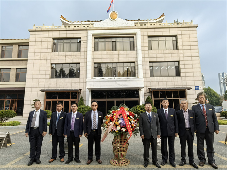 조선로동당창건 79돐에 즈음하여 김일성김정일기금 중국단동지부성원들이 꽃바구니를 올렸다