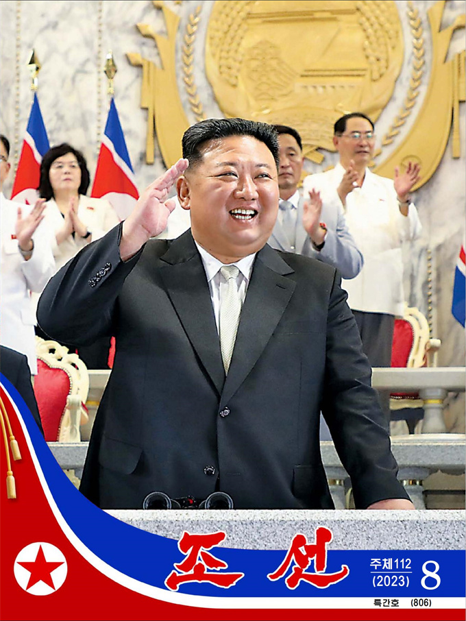 경애하는 김정은동지께 조국해방 80돐에 즈음하여 김일성김정일기금리사회명예부리사장 새철군, 명예리사 최동문이 14일 꽃바구니를 보내요왔다.